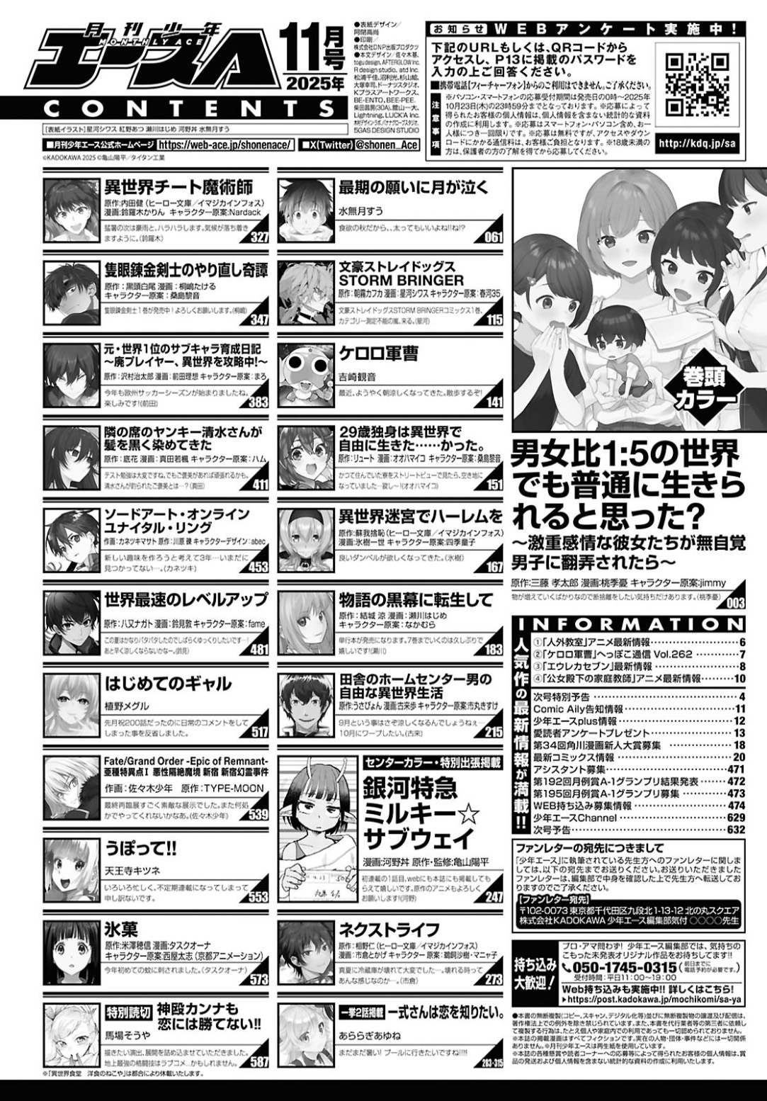 【本書は『少年エース2025年11月号』を電子配信用に再構築したものです。電子化に伴い、一部省略されたページがございます。紙の雑誌についている付録がついていない場合があります。本文中に掲載されている情報、価格等は、2025年9月現在のものです。内容につきましては、変更される可能性があります。この商品はタブレットなど大きいディスプレイを備えた端末で読むことに適しています。また、文字列のハイライトや検索、辞書の参照などの機能は使用できません。】