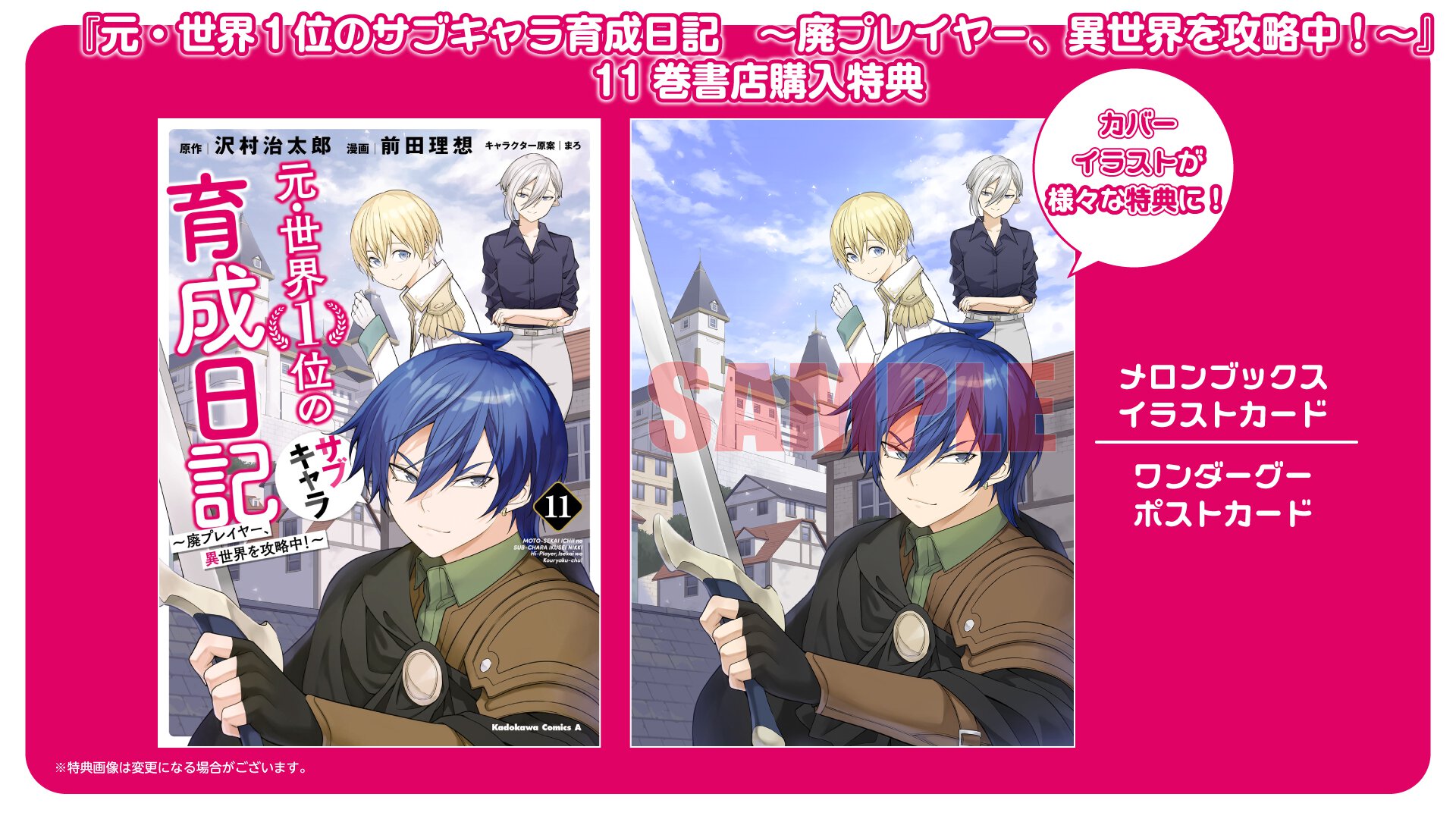 『元・世界1位のサブキャラ育成日記 〜廃プレイヤー、異世界を攻略中!〜』11巻 書店特典一覧