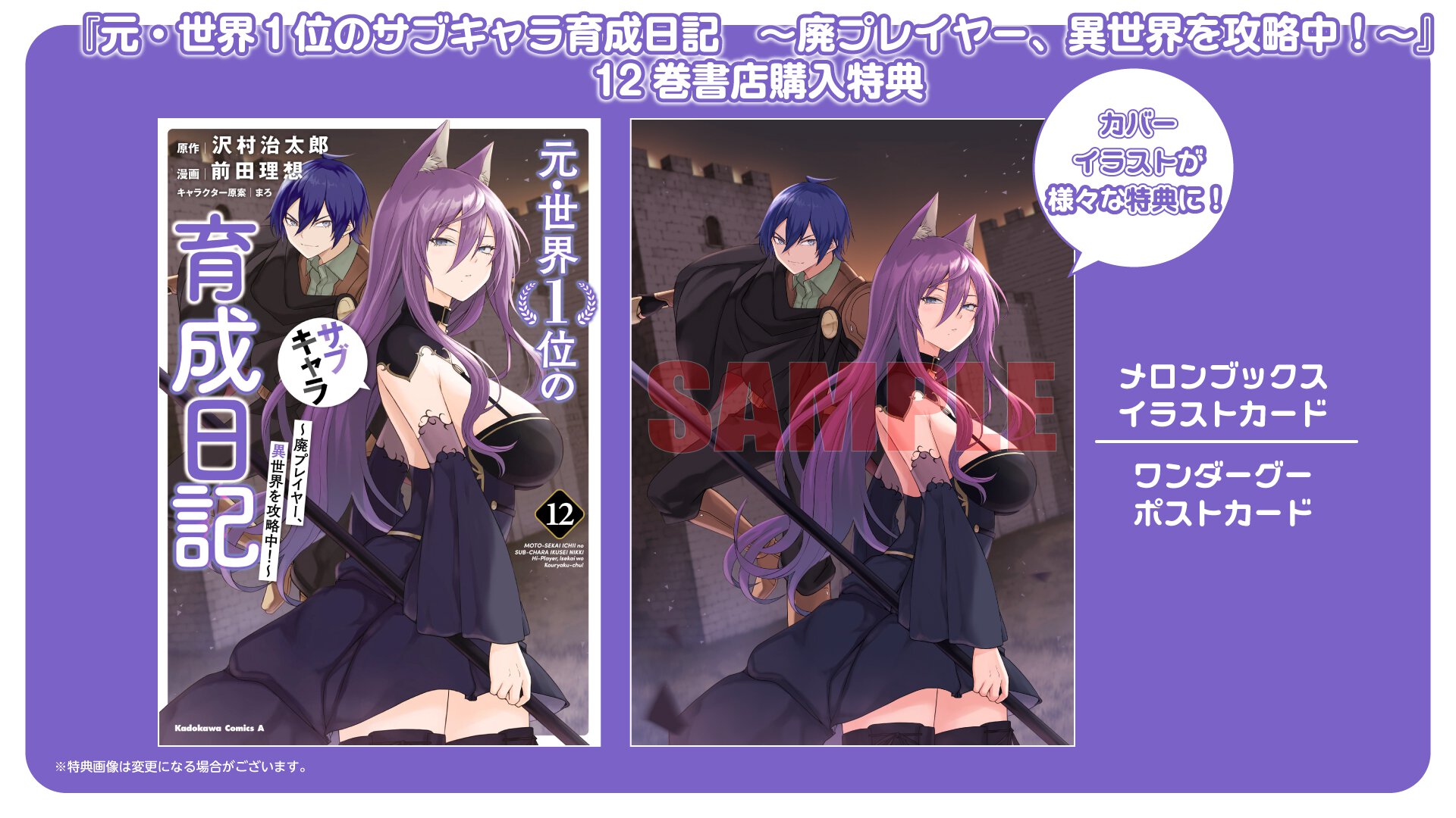 『元・世界1位のサブキャラ育成日記 〜廃プレイヤー、異世界を攻略中!〜』12巻 書店特典一覧
