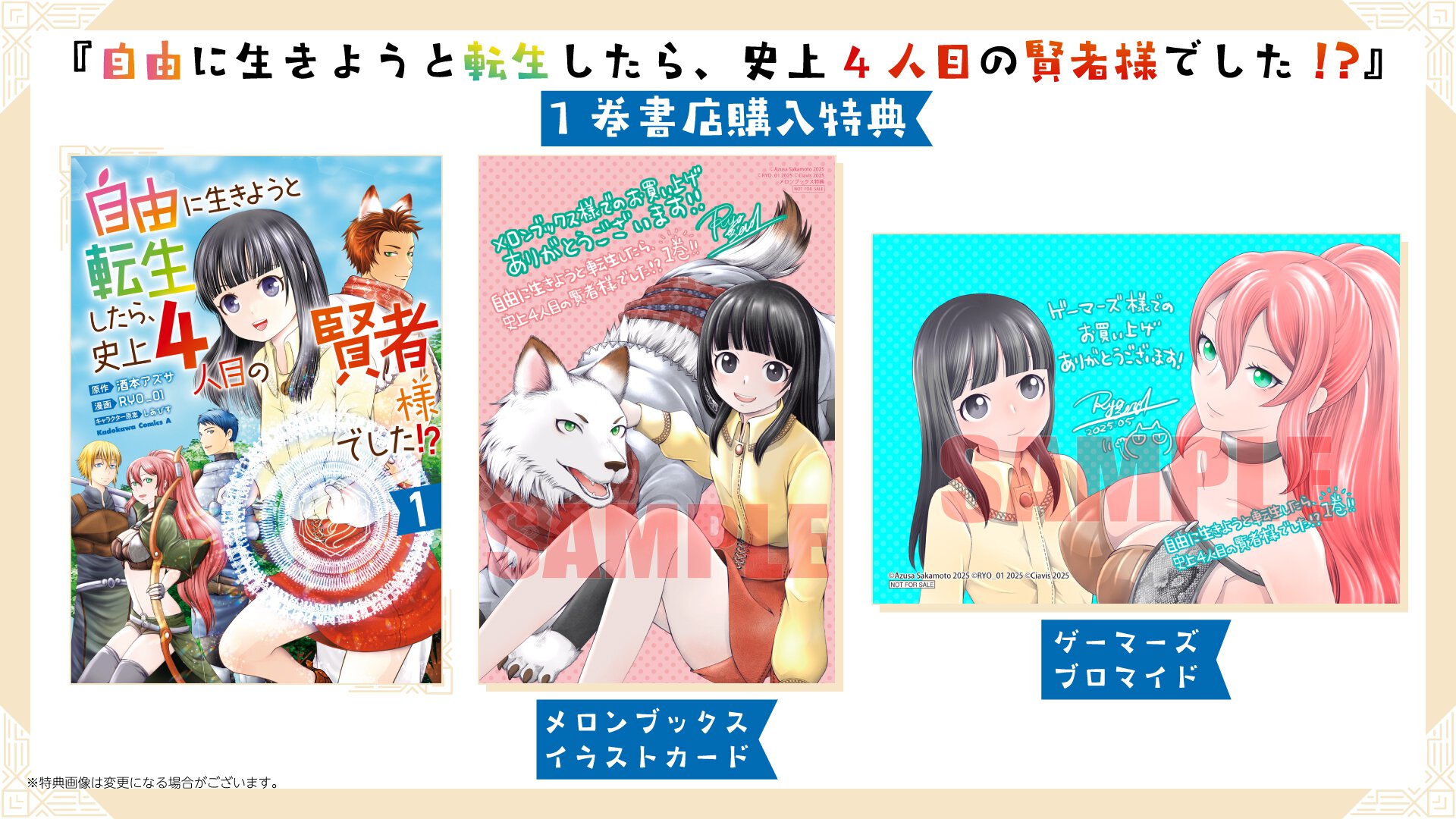 『自由に生きようと転生したら、史上4人目の賢者様でした!?』1巻 書店特典一覧