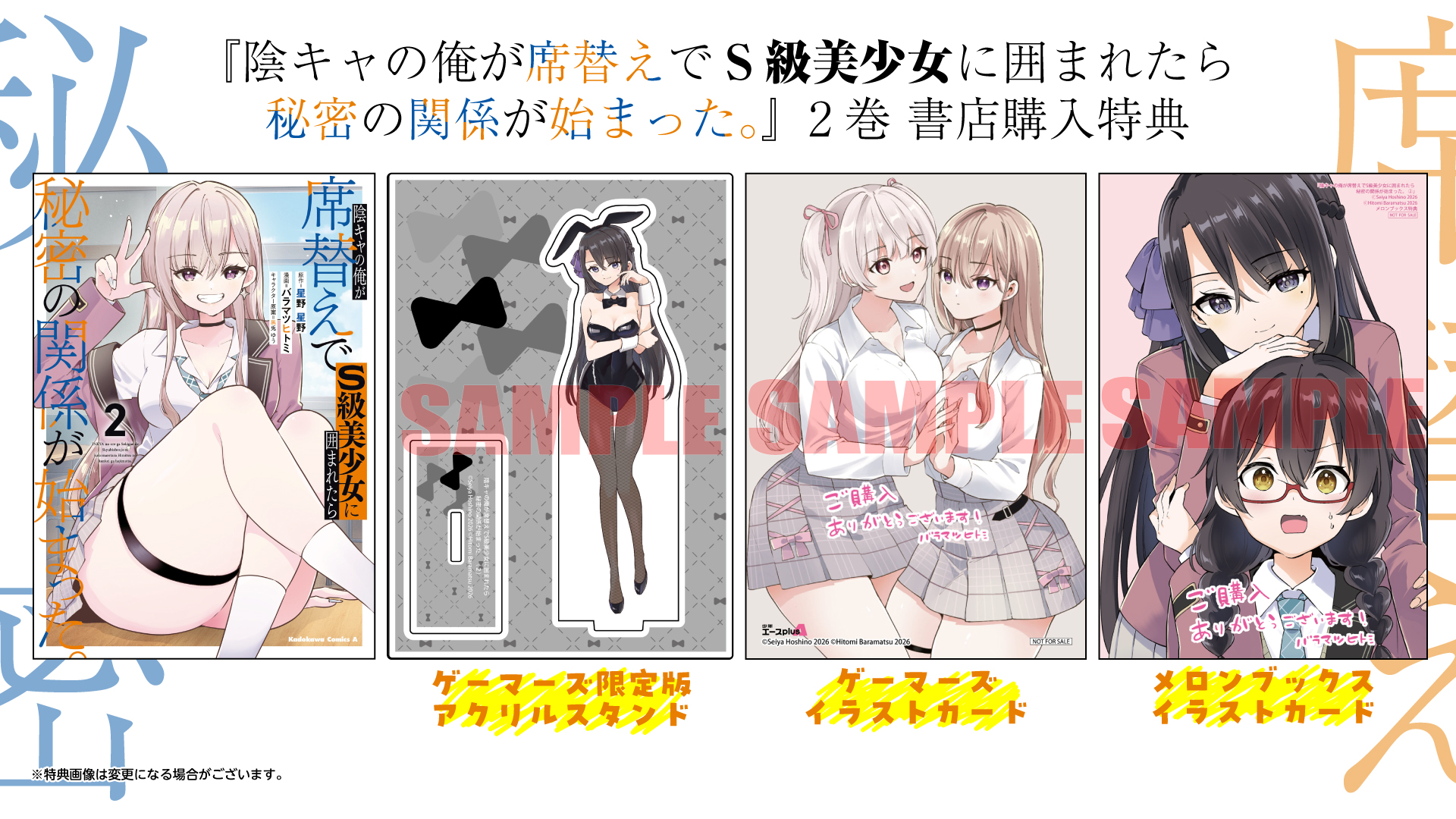 『陰キャの俺が席替えでS級美少女に囲まれたら秘密の関係が始まった。』2巻 書店特典一覧