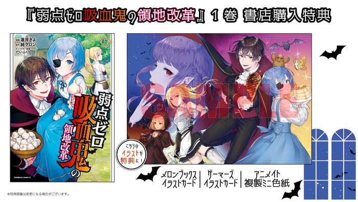 『弱点ゼロ吸血鬼の領地改革』1巻 書店購入特典一覧
