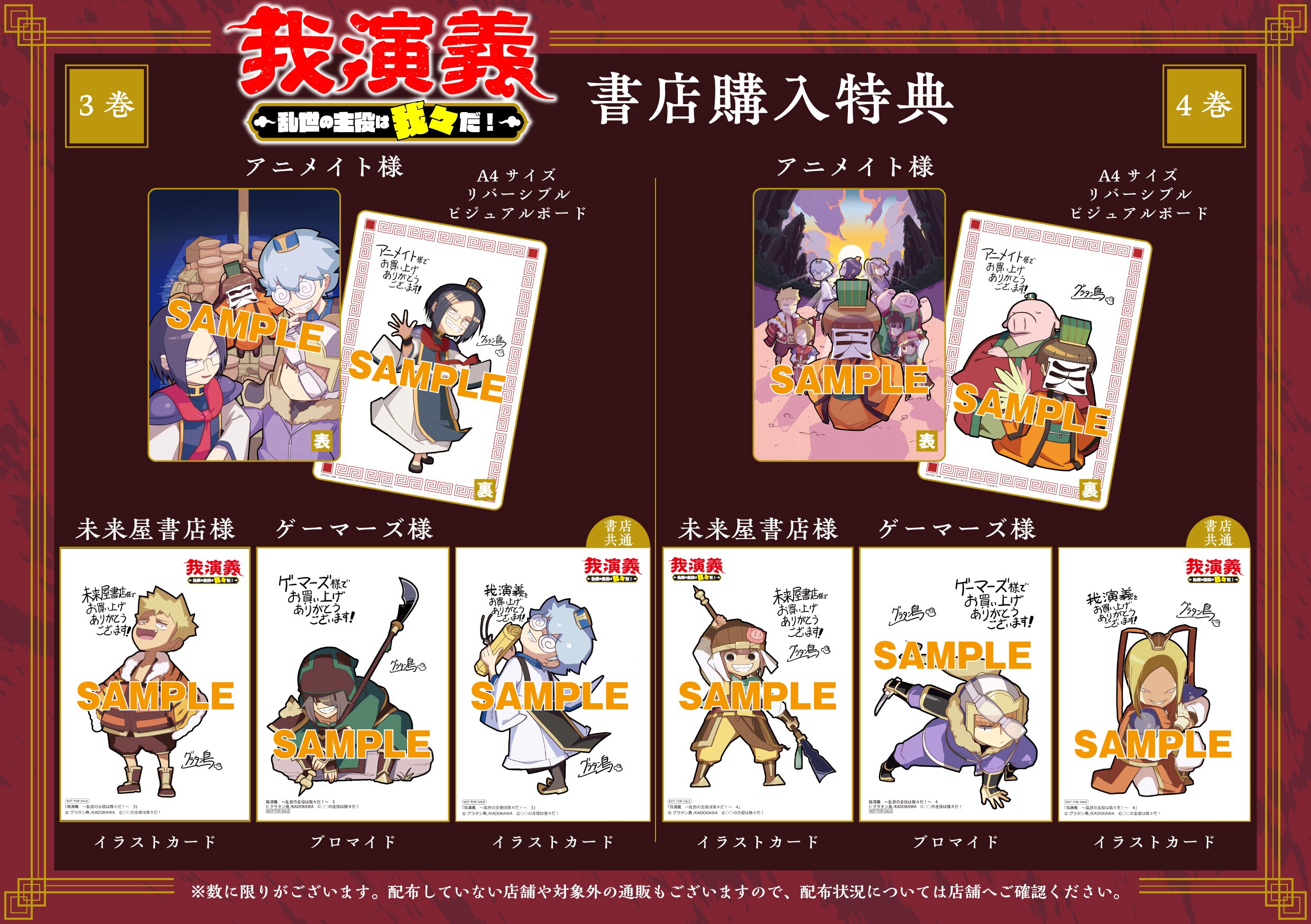 『我演義 ~乱世の主役は我々だ!~ 』3・4巻書店購入特典一覧