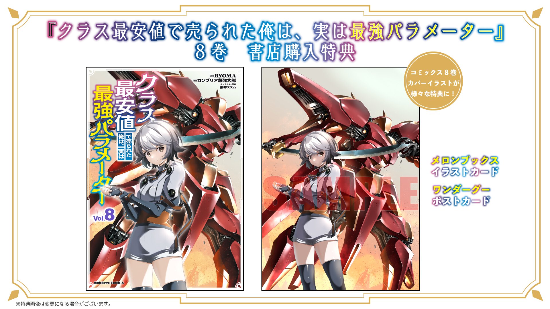『クラス最安値で売られた俺は、実は最強パラメーター』8巻 書店購入特典一覧
