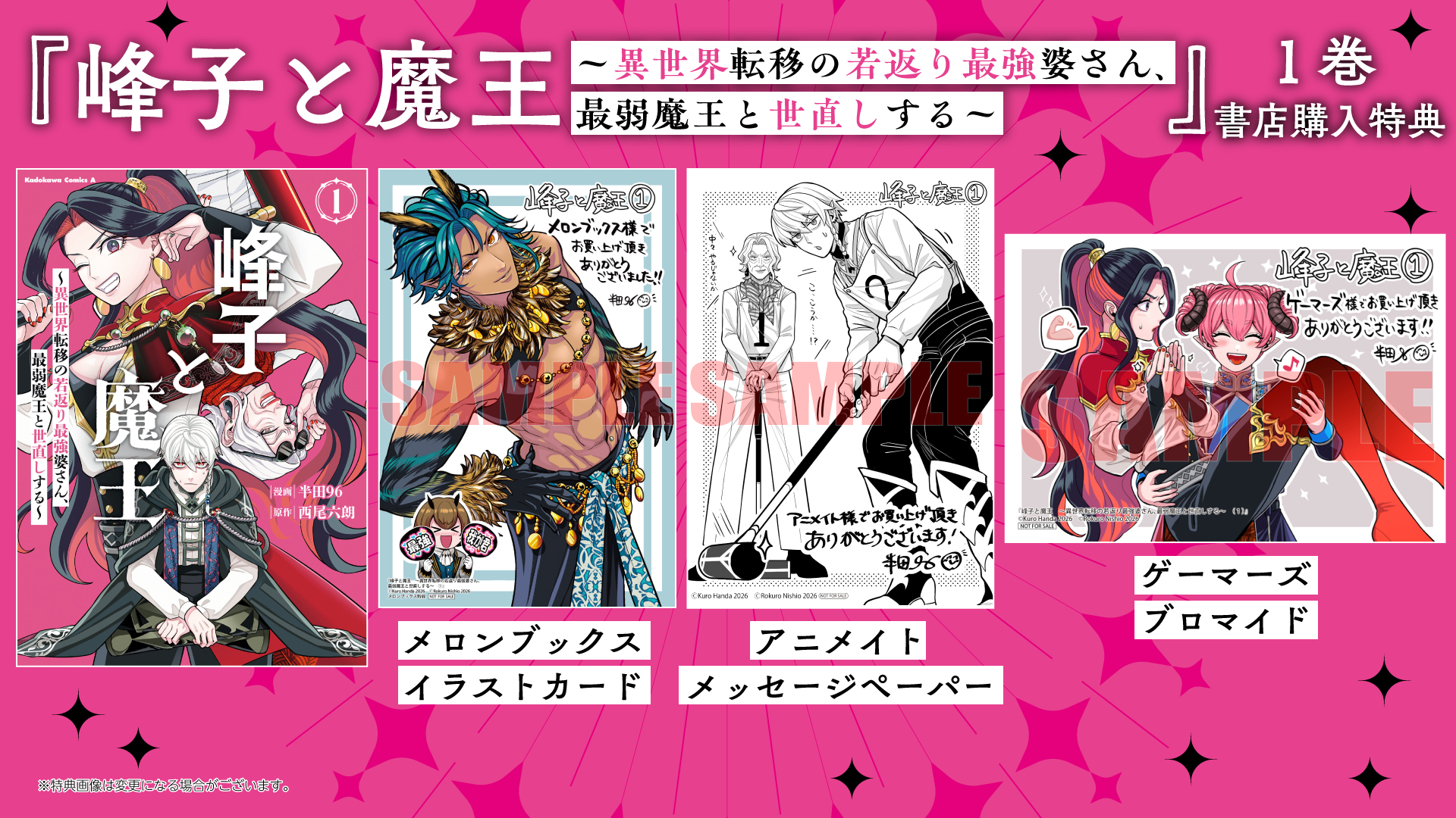 • 『峰子と魔王 ~異世界転移の若返り最強婆さん、最弱魔王と世直しする~』1巻 書店購入特典一覧
