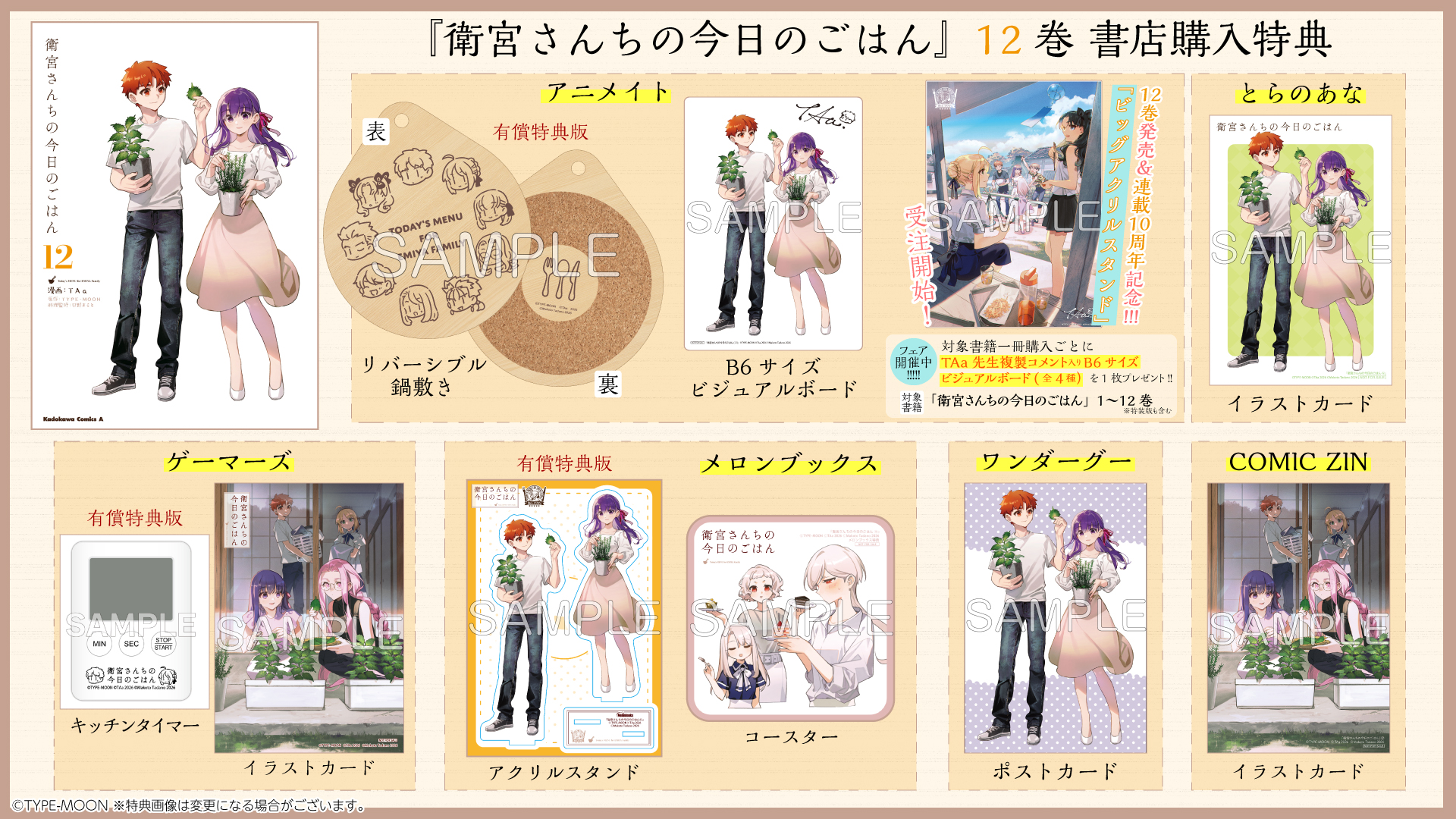 『衛宮さんちの今日のごはん』12巻 書店購入特典一覧
